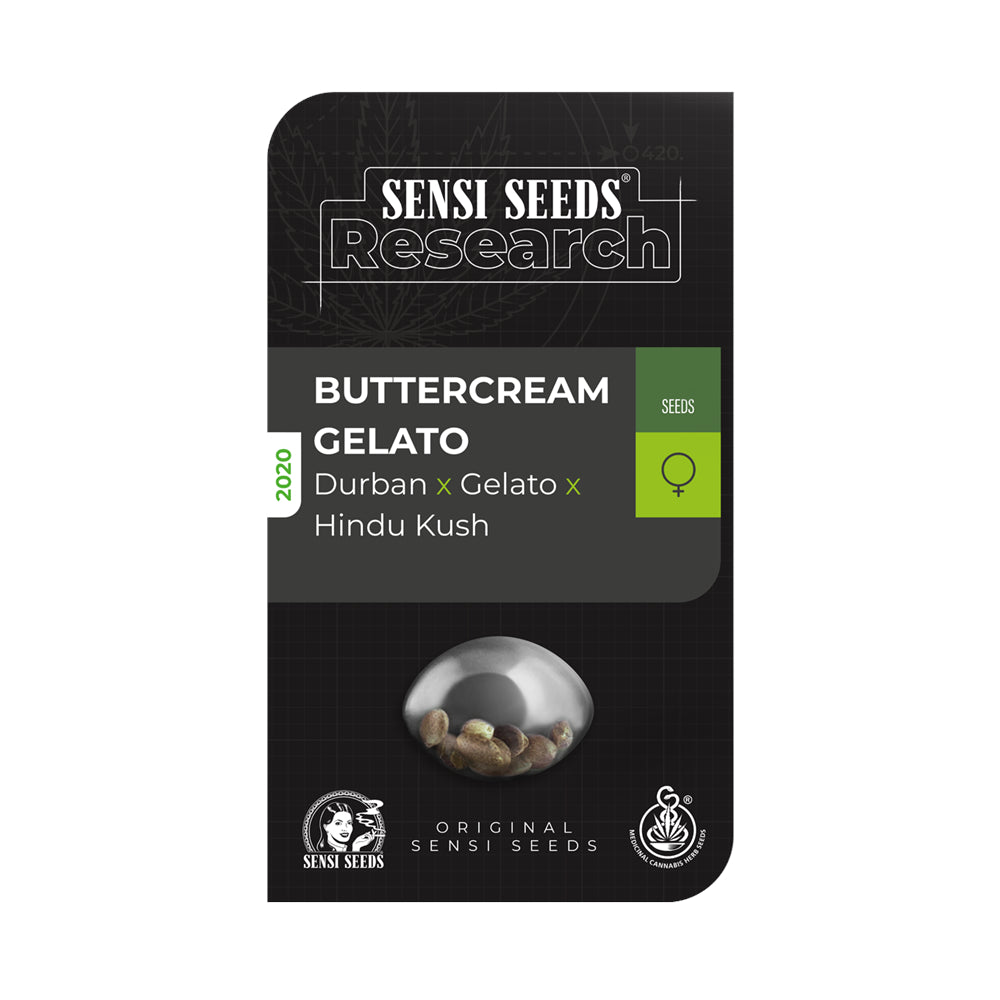 ButterCream Gelato, esta cepa es 60 % indica, 40 % sativa, su impresionante genética incluye Durban,